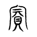 贈的對象。戰國文字亦已固定從貝,字形與《說文》古文同。篆文形改,從貝、?聲。《說文》:「賓,所敬也。」段注:「〈大宗伯〉:『以賓禮親邦國賓客。』渾言之也。析言之則賓客異義。又賓謂所敬之人,因之敬其人亦曰賓。又君為主,臣為賓。」字形至隸書稍變,至楷書形反又與篆文接近。在六書中屬於形聲。規範字作宾。
