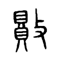 甲骨文字形從攴、從鼎。從攴,指扑擊而言;從鼎,指被扑擊的珍貴器物。從攴、從鼎,表示將珍貴器物擊毀。字或從攴、貝,貝亦聲,貝為財貨,聲兼義。金文字形或從殳旁,或從二貝,義皆相近。戰國文字或從攴、從二貝,或從攴、從貝。《說文》籀文承金文作從二貝,篆文則承戰國文字字形從攴、從貝。隸書、楷書又承篆文字形而來。在六書中屬於形聲兼會意。